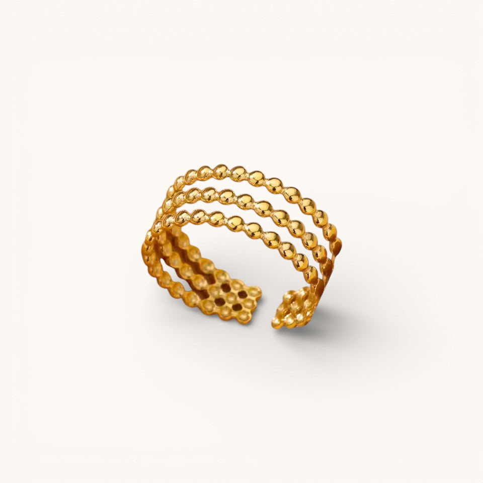 Anillo Ajustable Dorado Mujer Triple De Bolitas