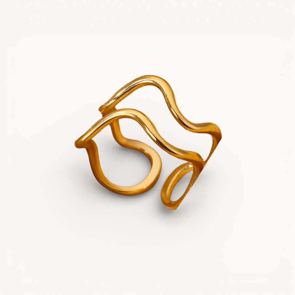 Anillo Ajustable Dorado Mujer De Ondas Minimalistas