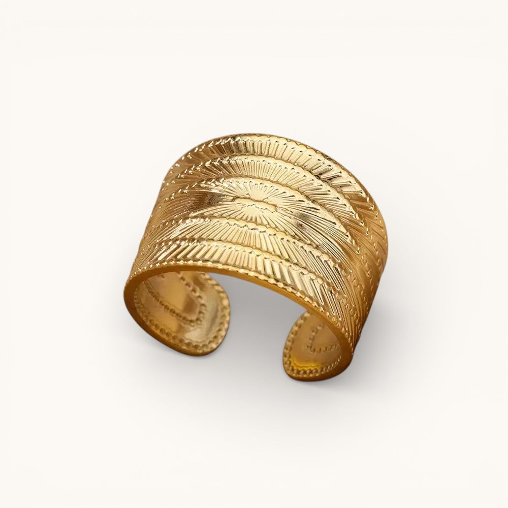 Anillo Ajustable Dorado Mujer Ancho Grabado Radial
