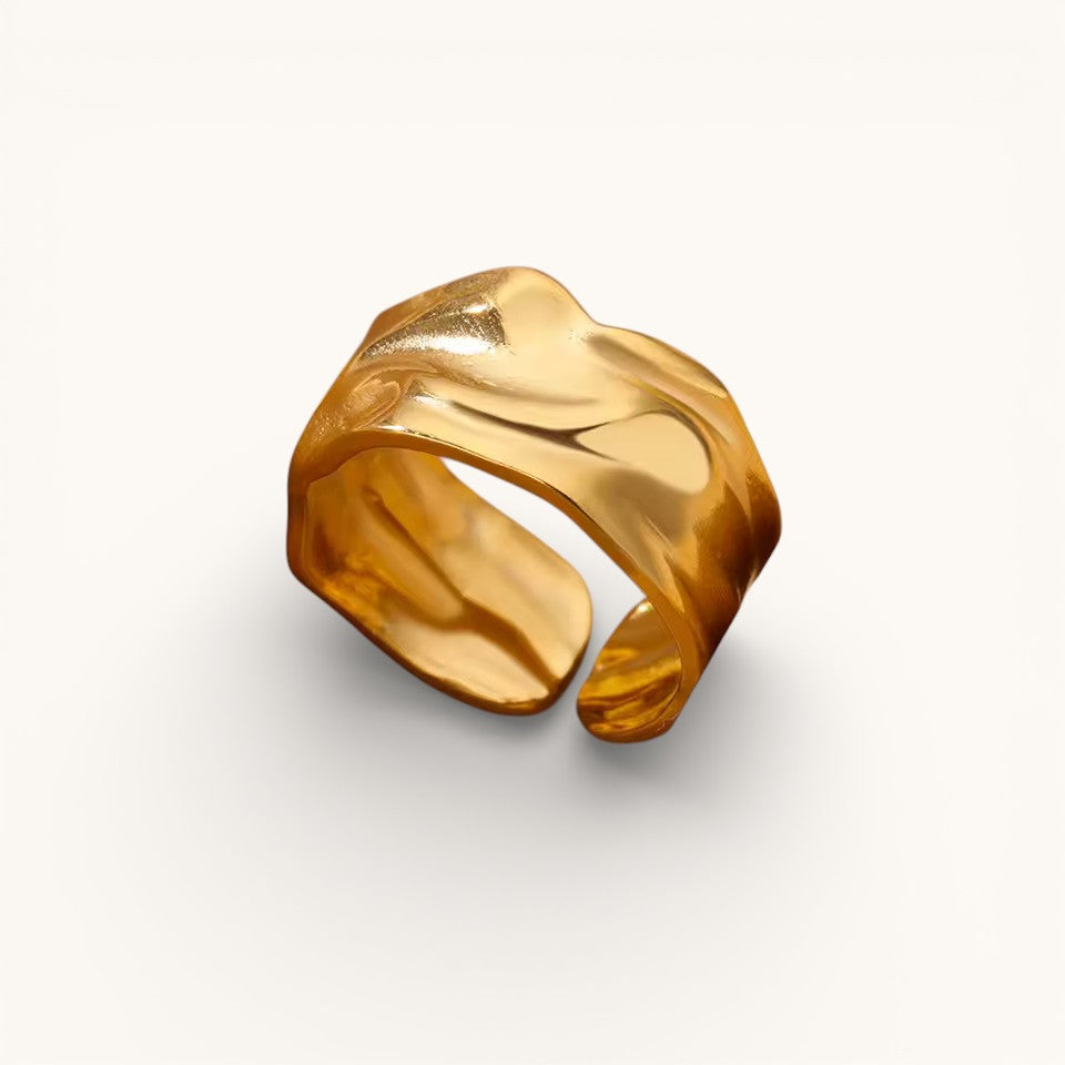 Anillo Ajustable Dorado Mujer Ancho De Forma Orgánica